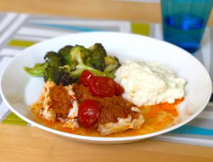 Den här snabba fiskgratängen gör jag med röd pesto, men har du tapenade, grön pesto, kronärtskocksröra eller ajvar relish hemma så funkar dessa röror också utmärkt bra på vit fisk som torsk och kolja. Jag serverar en len blomkålspuré och knaprig rostad broccoli till gratängen. Älskar du kokt potatis är det det du ska äta till din.