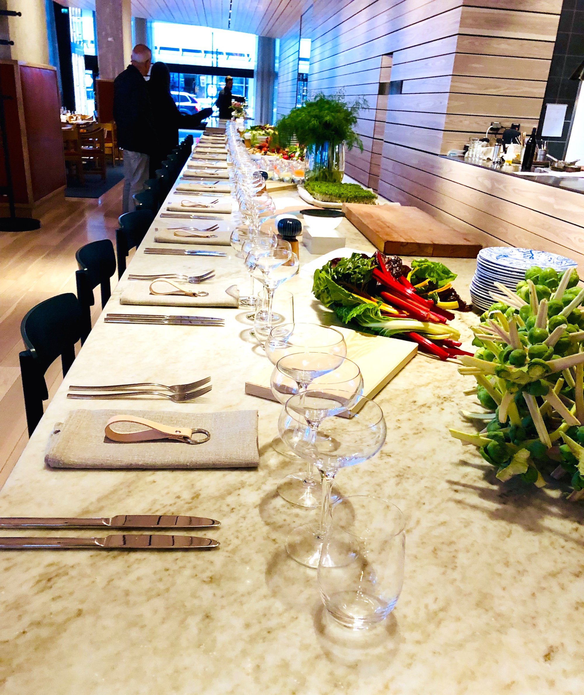 Meningen är att menyn ska gå från kött till enbart fisk, skaldjur och vego. Här jag vill sitta och sippa på ett glas skumpa till mina dyrbara romkorn.