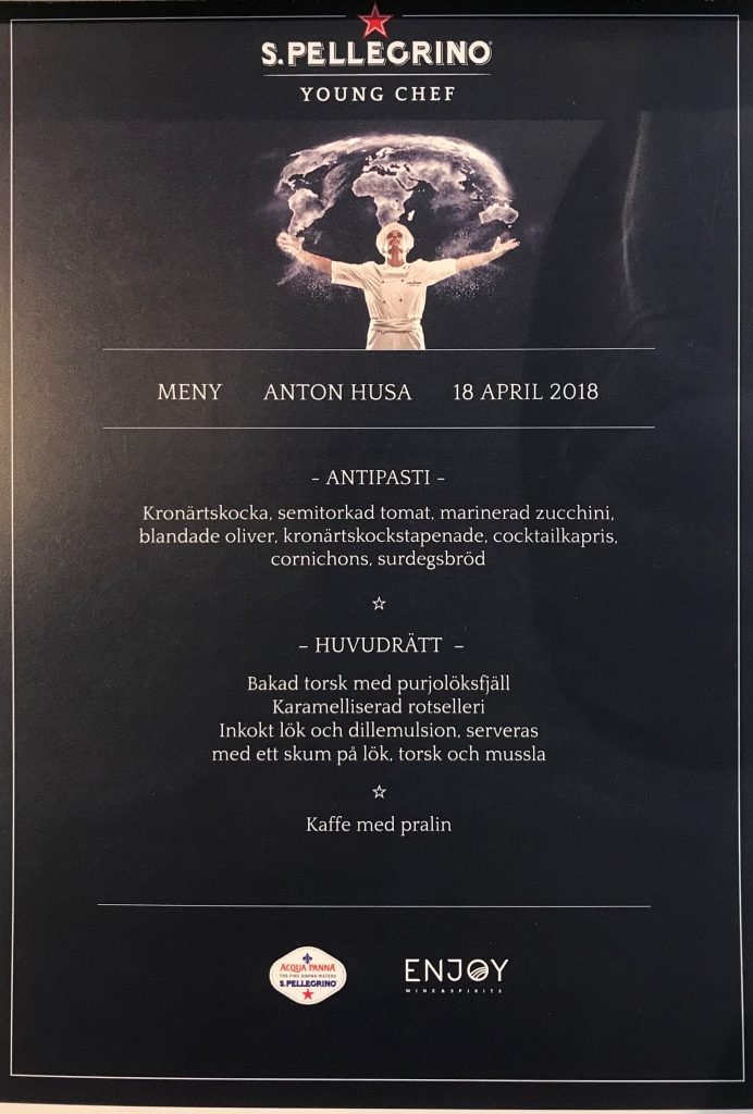 I tävlingen S. Pellegrino Young Chef tävlar 21 kockar under 30 år. Tävlingen hålls i Milano 11-13 maj. Vårt svenska hopp heter Anton Husa och jobbar till vardags i Göteborg på Upper House Dining. När jag blev inbjuden att testa hans tävlingsrätt tackade jag ja på studs!