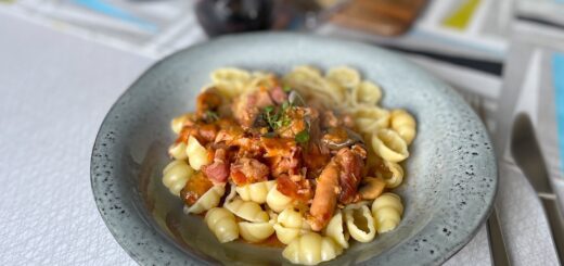 - Smaka av med mera lime om det behövs. Garnera med limeskiva och servera genast.