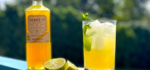 - Blanda alla ingredienser i ett glas och dekorera med limeskiva.