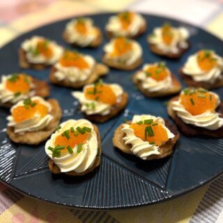 Det här receptet på Små potatisplättar med löjrom hittar jag på när min plan egentligen är att göra någon slags potatisblinier som jag har gjort till min systers 40-årsfest för ett tag sedan. Det var faktiskt ganska länge sedan så jag kommer inte ihåg mer än att jag stekte plättarna och spritsade löjrom på dem.