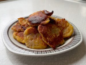 - Stek plättarna minst gyllenbruna i rejält med smör, några få åt gången så du har koll på dem. De ska ändå svalna sedan så det är ingen hets.