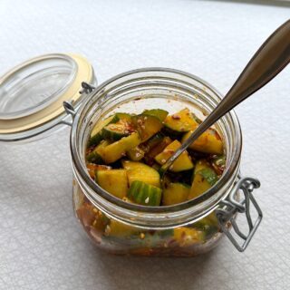 Här är ett recept på picklad gurka i koreansk stil. Den passar till massor av rätter men senast åt vi den till asiatiska tacos med kyckling. Snabb koreansk gurksallad gör du klar på 20 minuter men om den får stå längre så får den ännu mer smak.
