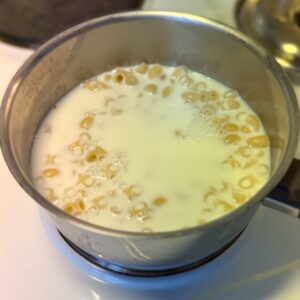 - tillsätt mjölk och låt koka upp.