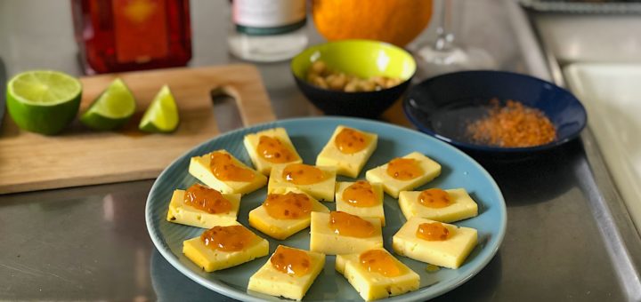 Här är ett tips på enkla drinktilltugg med rökt ost. Jag har börjat experimentera med mezcaldrinkar. Den mexikanska agavespriten mezcal har en viss rökighet i sig och därför passar dessa tilltugg helt förträffligt! Men...