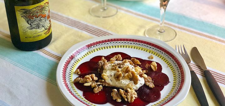 Recept på rödbetscarpaccio med fetaostcrème och valnötter