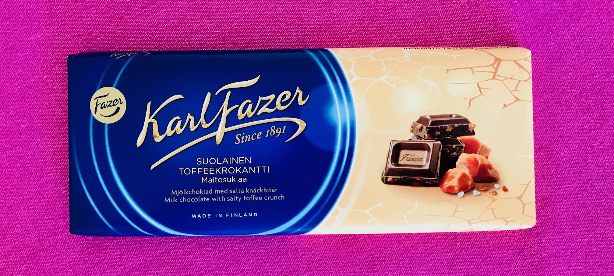 Står jag i en butik och får välja choklad blir det dock alltid, helt utan undantag, Karl-Fazer Blå. Alltså. Det är en mjölkchoklad som har rik kakaosmak, inte är toksöt och så otroligt välbalanserad att jag inte kan sluta äta av den. Den är som knark för kroppen! Starkt beroendeframkallande. Därför får jag också väldigt ont i magen, då jag inte tål mjölkchoklad så bra.