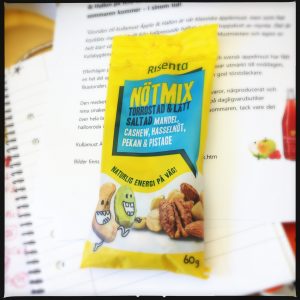 Risenta har gjort tio olika blandningar både med torrostade och naturella nötter, påsarna innehåller 50, 60 eller 80 gram, (priset fortfarande okänt). Och just torrostade nötter är fantastiskt gott tycker jag! Den här innehåller mandlar, cashew-, hassel-, pekannötter och pitaschkärnor.