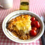 Min variant av lazy lasagna gör jag med bandspaghetti, köttfärssås, snabb bechamel och riven ost. Supergott! Den funkar utmärkt i matlådor också – om det blir något över.