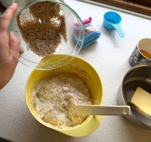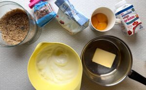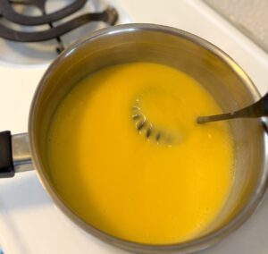 • Medan kakan gräddas: blanda äggulor, socker, grädde och smör i en kastrull.